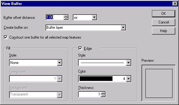 - In the Edge area, specify the style, color, and thickness to use for drawing the outer line around the buffer areas.
