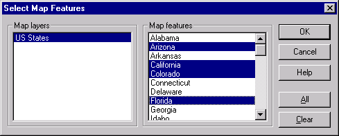 multiple contiguous features. For example, click Arizona, and then Shift-click California.