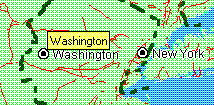 When you pause the mouse pointer over a map feature, you see the name of that map feature displayed in a small yellow popup window called a MapTip. For example, when you position the mouse pointer over Washington, the MapTip displays the name of the city, as shown in the following illustration.