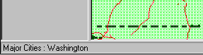 In this illustration, the status bar indicates that the mouse is currently positioned over Washington, which is on the Major Cities layer.
